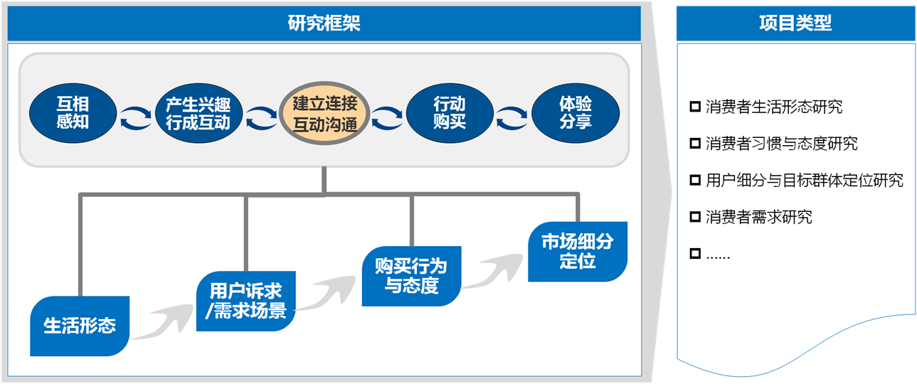通過調(diào)查、深入分析消費(fèi)者的消費(fèi)心理以及行為習(xí)慣形成的原因,幫助委托方提煉能有效影響消費(fèi)者的各種因素,為營(yíng)銷策略的制定提供依據(jù)。