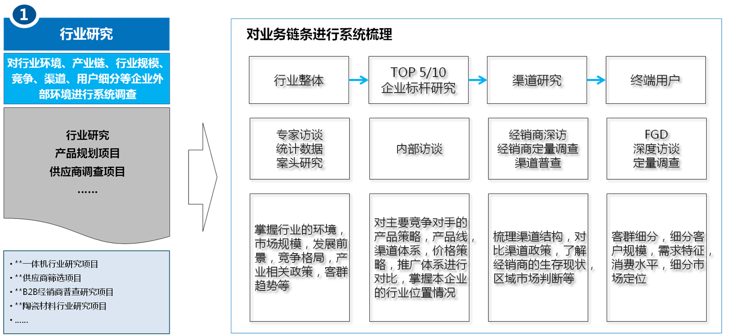 行業(yè)研究是針對行業(yè)整體,主要競爭企業(yè),行業(yè)渠道體系以及終端客戶市場做系統(tǒng)的梳理